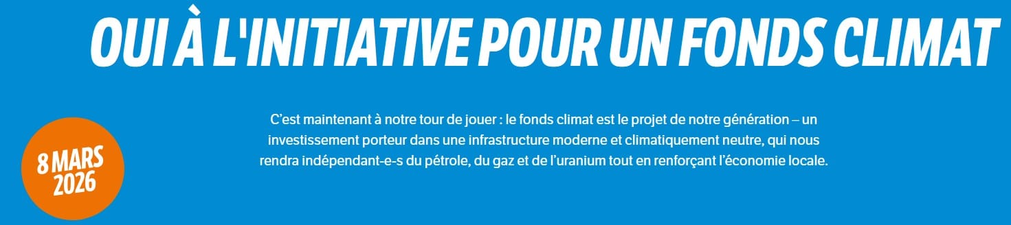 Le 8 mars, nous voterons sur l’initiative « Pour un Fonds Climat ». Lancée par les Vert.e.s et le Parti socialiste, cette initiative a recueilli un large soutien de la part des deux principales centrales syndicales, de nombreuses ONG environnementales et, bien sûr, des Grands-parents pour le climat.