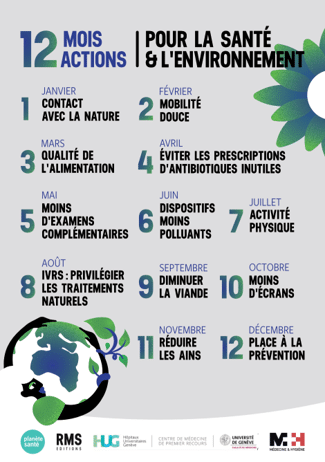 Conférence coorganisée en 2023 par les GPClim Fribourg et les Parents pour le climat; Envoi postal des 6 affiches à chaque cabinet pédiatrique du canton, en 2024.