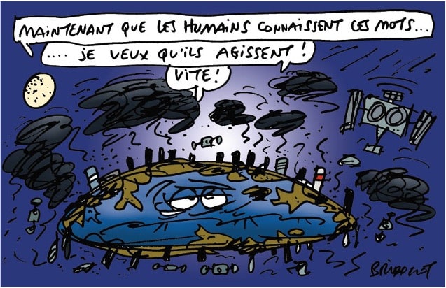Aujourd’hui nos habitudes de vie et le modèle de notre société (économique, politique, socio-culturel) sont en train non seulement de créer et faire durer les dérèglements climatiques mais aussi de produire les destructions de la biodiversité et de tout le vivant sur notre planète.